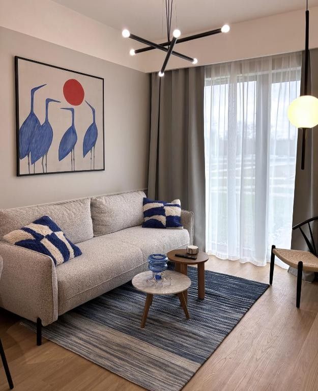 Apartament został zaprojektowany z dbałością o każdy szczegół. Znajdziesz tu przytulną strefę wypoczynku, funkcjonalny aneks kuchenny oraz komfortową sypialnię sprzyjającą prawdziwemu odpoczynkowi. Nowoczesne oświetlenie, naturalne materiały i stonowana kolorystyka tworzą spokojną, harmonijną atmosferę.