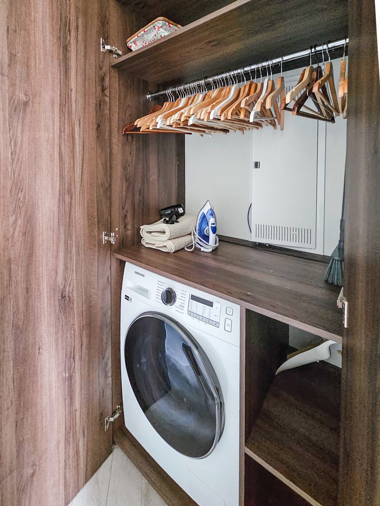 ✔️ przestronna szafa oraz pralka dla pełnej wygody pobytu